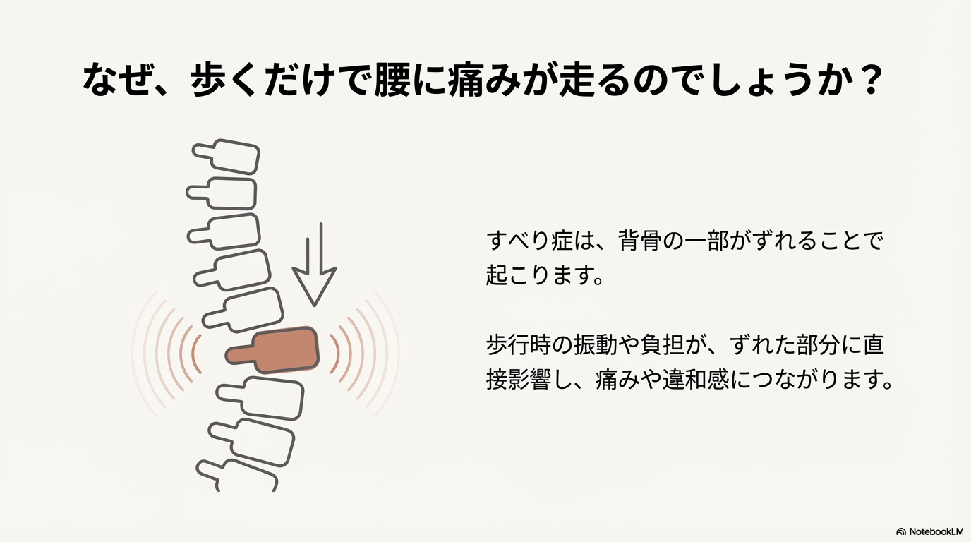 すべり症の方が「歩くとつらい」と感じる理由は、