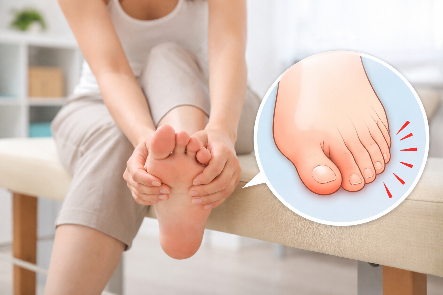 このように、痛みのきっかけが靴だったり、小指の形の変化だったりするケースは少なくありません。まずは、内反小指でよく見られる症状を確認してみましょう。そして、自宅でもできる簡単なセルフチェック方法も紹介します。