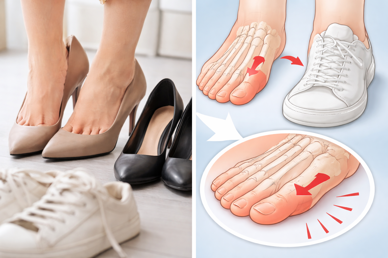 「おしゃれな靴を履いている人に多い」と聞いたことがある方もいるかもしれません。確かに、つま先の狭い靴は小指を圧迫しやすいため、変形のきっかけになることがあります。