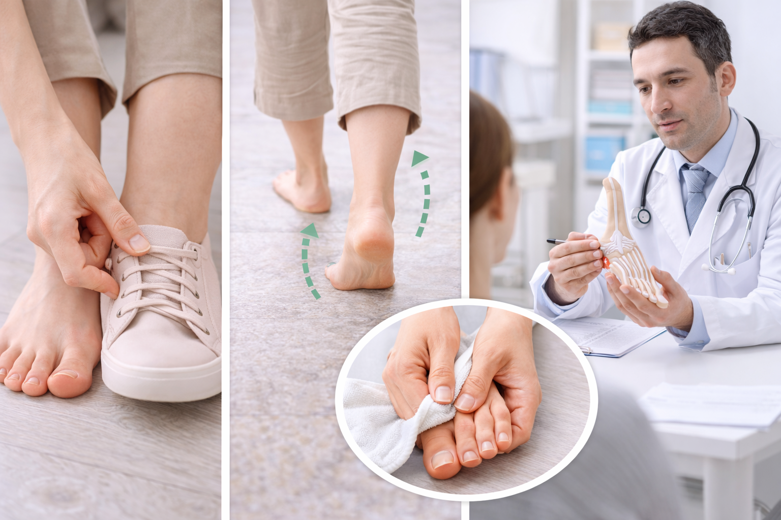そう思ったときは、足に負担をかけにくい生活習慣を意識することが大切です。特別なことをする必要はなく、靴選びや歩き方、足指の使い方など、日常のちょっとした工夫がポイントになります。