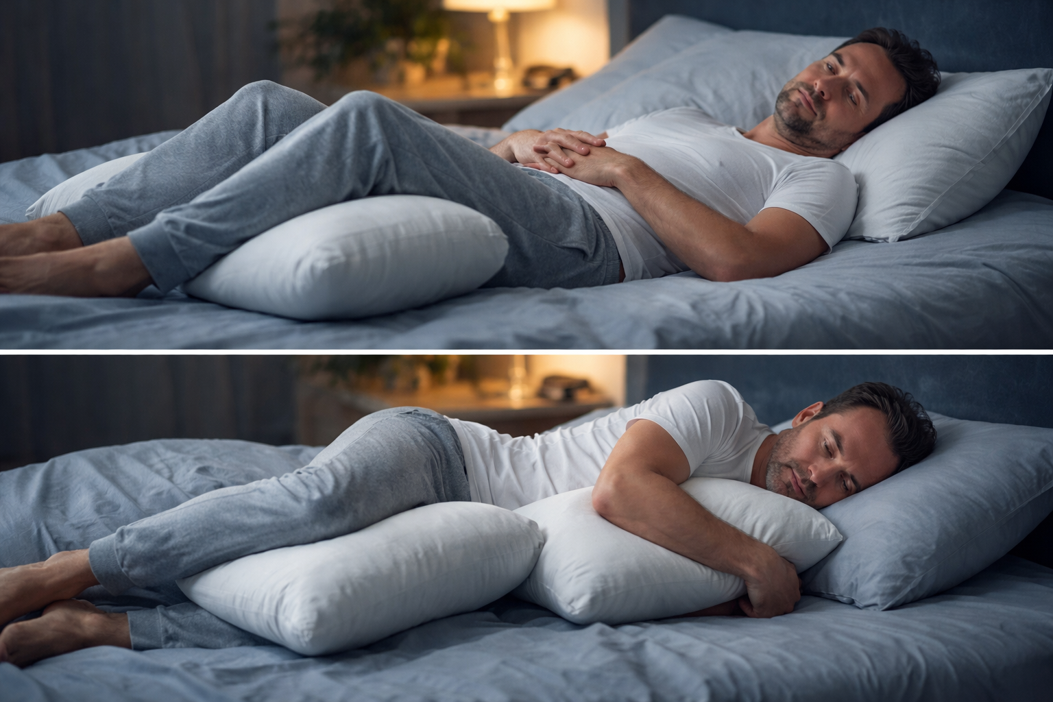 さらに抱き枕を使うと、上半身も安定して「体がラクに固定される感じ」が出てきます。
