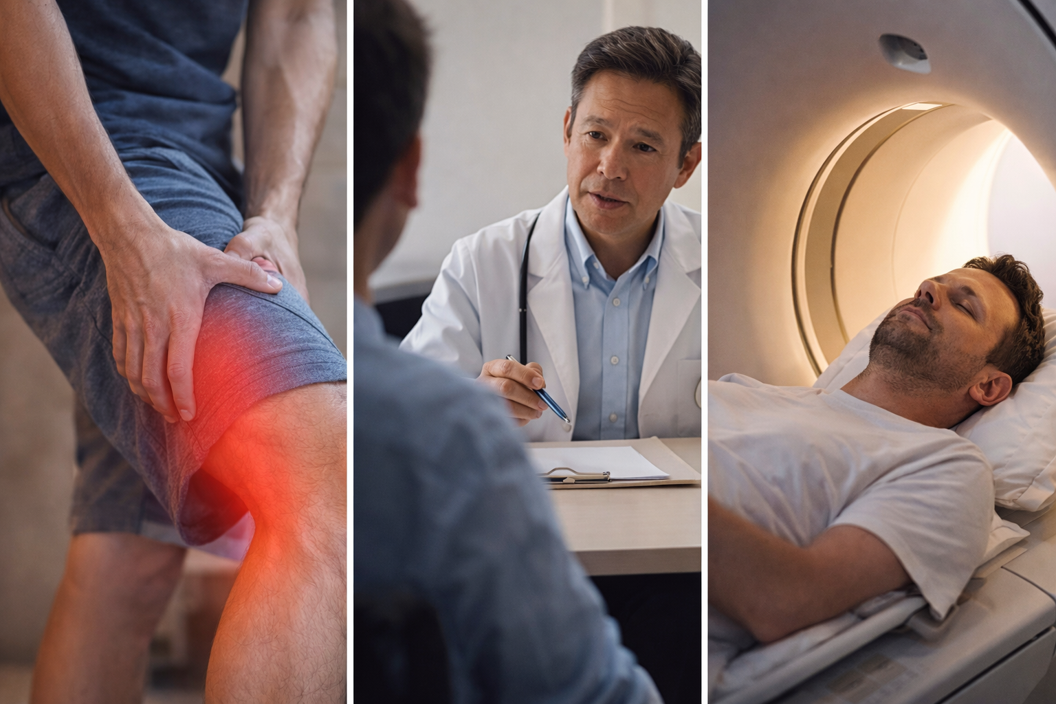 一般的には、まず問診と触診で状態を確認し、その後必要に応じてレントゲンやMRI検査が行われます。