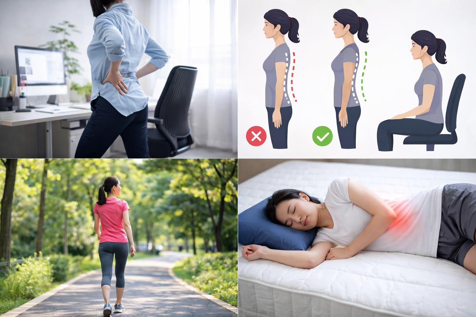 「姿勢ってそんなに大事ですか?」と思うかもしれませんが、実はかなり重要です。猫背や反り腰の状態が続くと、腰やお尻に偏った負担がかかり、再び痛みを引き起こす原因になります。