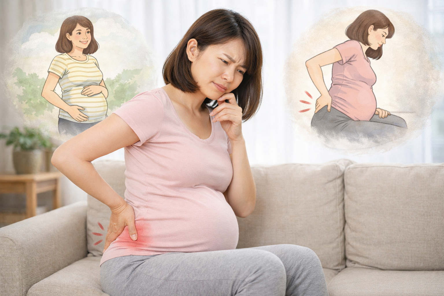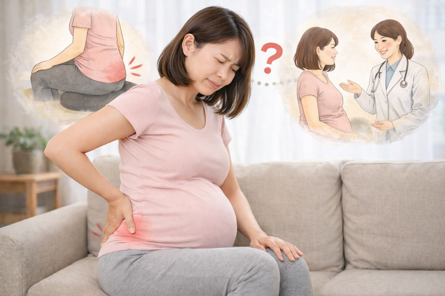 妊娠中は体が大きく変化する時期です。骨盤のゆるみや姿勢の変化によって、普段は感じない部分に負担がかかるのは自然なこと。そのため、「急に痛くなった」と感じても、過度に心配しすぎる必要はないケースが多いです。