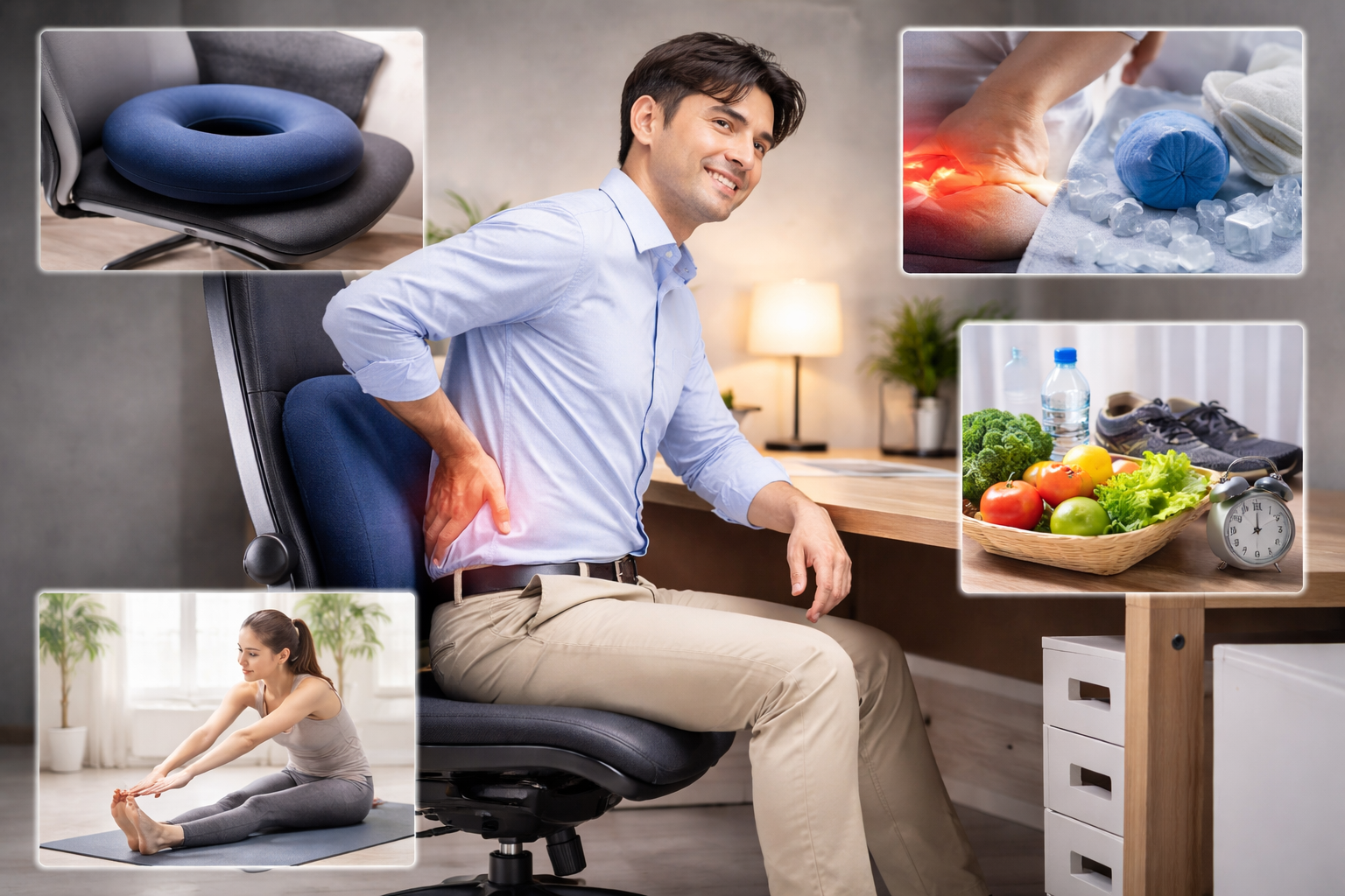 そう思いますよね。実際、座ると腰が痛い場合は、日常のちょっとした工夫で負担を減らせることが多いです。ただし、無理をするのではなく“やさしく整える”ことがポイントです。ここでは、自宅で取り入れやすい対処法を具体的に見ていきましょう。