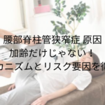 脊柱管狭窄症とは、背骨の中を通る神経の通り道(脊柱管)が何らかの原因で狭くなり、神経が圧迫されることで症状が出る状態だと言われています。加齢による骨や靭帯の変化が主な要因とされており、中高年以降に多く見られる傾向があります。