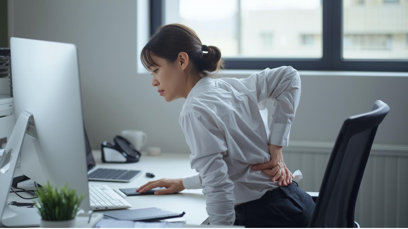 長時間の座り姿勢や前かがみの姿勢が続くと、腰や骨盤まわりに負担がかかりやすいと言われています。