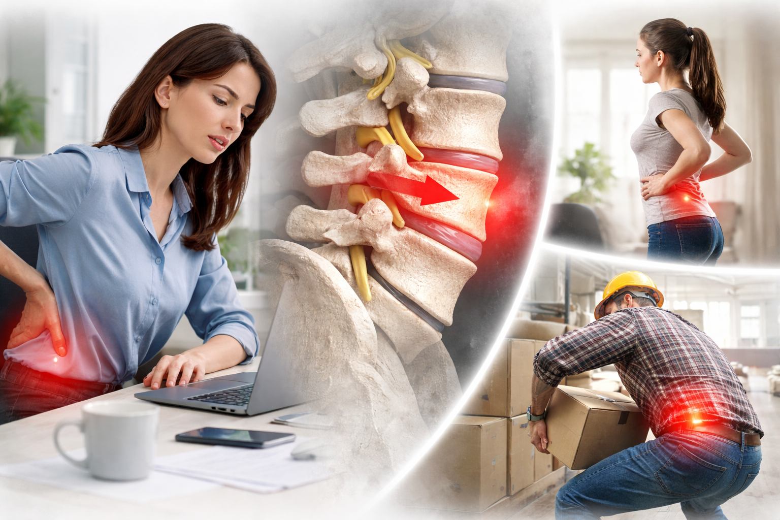 まず、変性タイプは加齢とともに増えていきます。特に50代以降の女性に多いとされ、筋力低下や関節の変化が関係しています。また、長時間のデスクワークや反り腰の姿勢が続くと、腰への負担が蓄積しやすくなります。