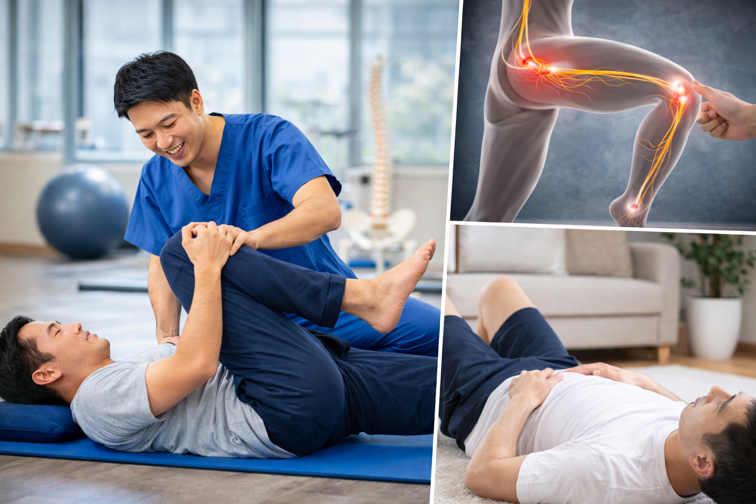 こうした疑問を持つ方は多いのですが、実はそれだけでは十分とは言えません。腰椎椎間板ヘルニアは、飛び出した椎間板が神経を圧迫することで痛みやしびれが出る状態です。ただし、症状の背景には筋力低下や姿勢の崩れも関係しています。そのため、回復を早めるにはリハビリが欠かせません。