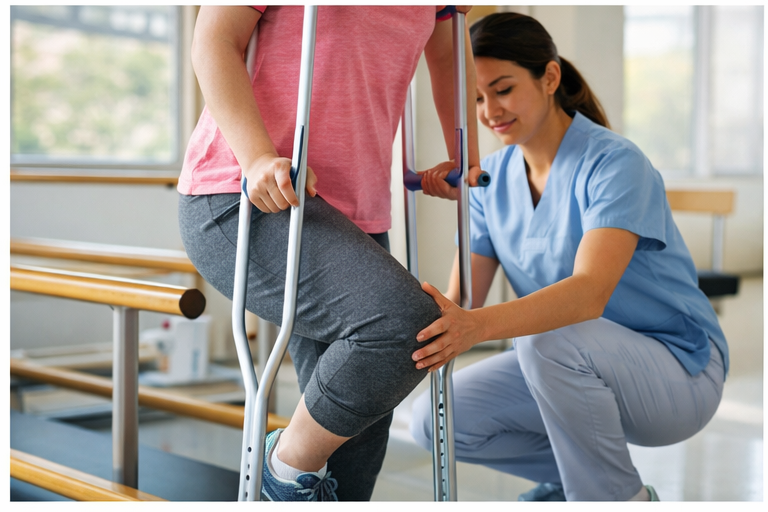 整形外科の手術では、術後のリハビリがとても重要です。関節の動きを回復させたり、歩行を安定させたりするために、入院中だけでなく退院後もリハビリを続けることがあります。