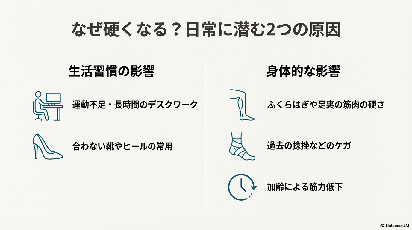 ② 足首の柔軟性が低下する主な原因