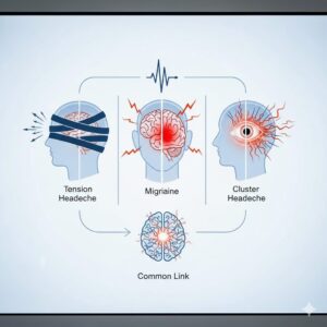 一見、異なるタイプに見える緊張性頭痛、偏頭痛、群発性頭痛ですが、実は重要な共通点があります。