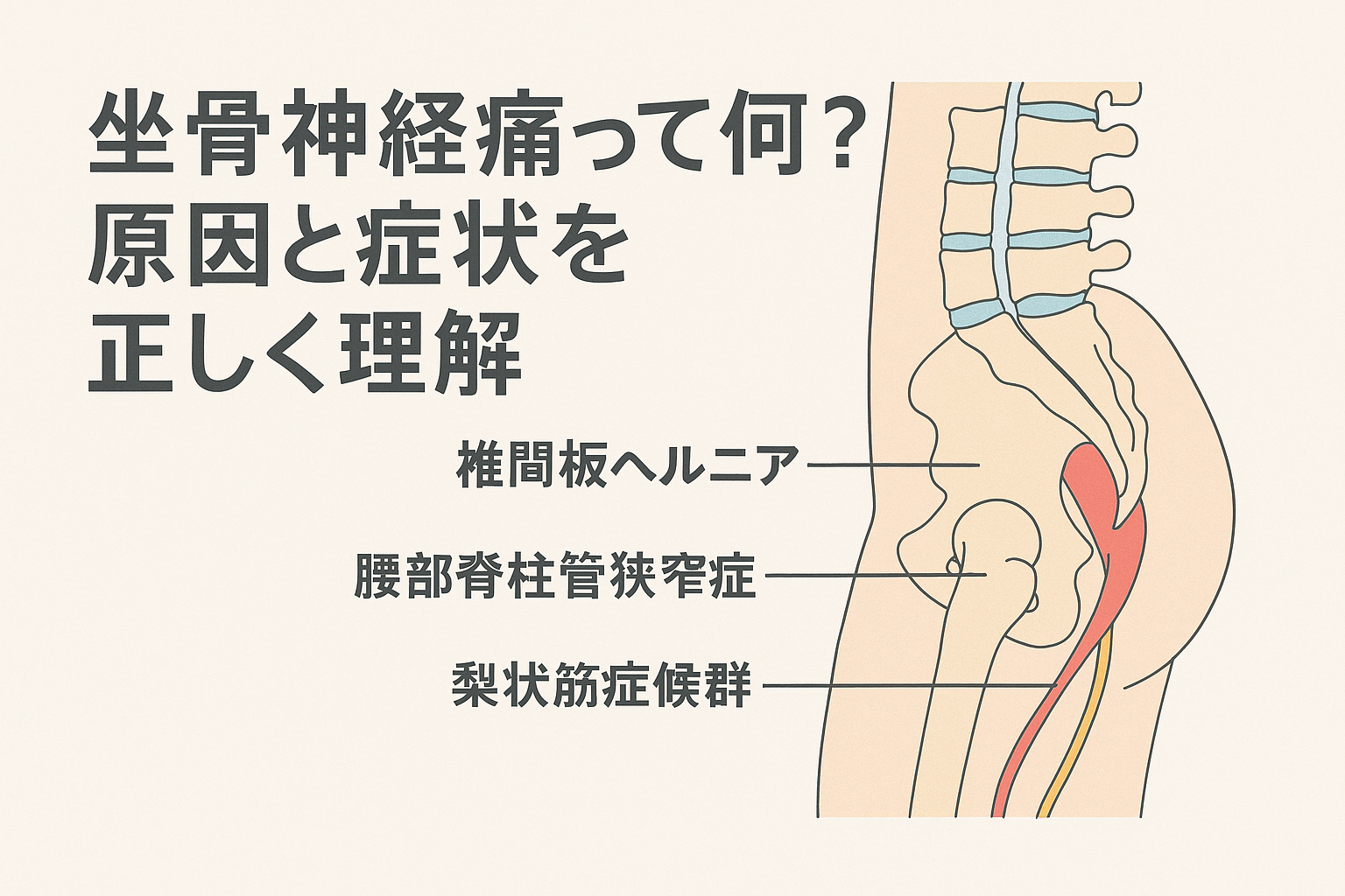 坐骨神経痛は腰やお尻、下肢にかけて現れる多様な症状の総称で、その背景には複数の疾患が関与しているとされています。自分の症状がどのタイプに近いのかを知ることで、今後の検査や施術を受ける際の参考になるでしょう。