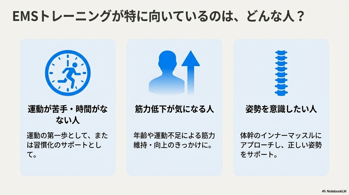 EMSが最も真価を発揮するのは、以下のような方々です。