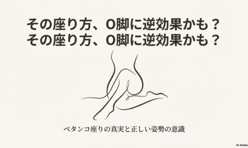 o脚とペタンコ座りの関係とは?【基礎理解】 o脚とはどんな状態か 「o脚って、見た目の問題だけ?」と感じる人も多いかもしれません。o脚とは、立ったときに膝同士がつかず、太ももから膝、足首にかけて外側にカーブして見える状態…